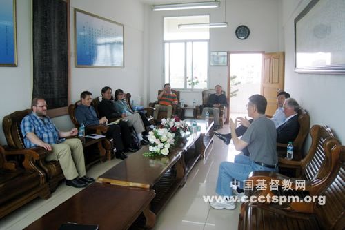 江西省基督教三自主委李保乐牧师在江西省圣经学校接待了来访一行。座谈中,李牧师为客人介绍了省圣经学校图书馆建设的进展情况;“中国伙伴”的总裁林铭立牧师则忆起自己家族与江西教会的特殊情谊并对圣经学院师生致以主内亲切的问候。随后,同行的美国丹佛教会吴奇恩夫妇与圣经学校师生分享了自己教牧关怀的经验,圣经学校学生表示非常受造就。