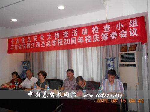 8月15日江西省基督教两会在南昌市举办了江西省堂点安全大检查工作会议暨江西圣经学校20周年校庆筹委会议,对全省堂点安全大检查工作进行统一部署,会议由江西省基督教三自爱国会主委李保乐牧师主持,副主委兼南昌市三自主委姚宝山牧师作会前祷告,省基督教协会会长罗黎光牧师致开幕词,副主委兼秘书长李云根牧师对安全检查工作作了说明和部署,副主委兼圣经学校校长林峰牧师对江西圣经学校20周年校庆筹备情况作了汇报。南昌市、九江市基督教两会分别就各自两会的自查工作做了经验交流,会议得到了南昌市基督教两会的爱心支持承办会议的食宿费用,省委统战部、省民族宗教事务局也非常重视这项工作,省民族宗教事务局二处处长陈艳、主任李根如莅临会议并做重要指示,同时还和检查小组一起全程参与检查工作。