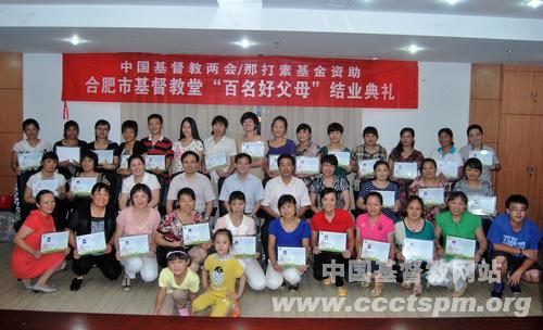 由基督教全国两会/那打素基金资助、安徽省合肥市基督教堂主办的“百名好父母培训”第二期在感恩中圆满结束,8月21日晚在合肥市基督教堂会议室举行了结业典礼,黄保俊牧师致辞、为学员颁发“好父母证书”,并师生合影,喜乐融融。