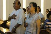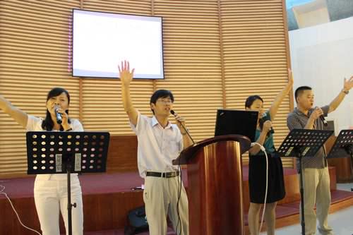 六点半未到,丰台堂副堂内外就可看到许多等候中的夫妻。六点半,琴声开始响起,带领夫妻团契的汪国新、王小凤夫妇及另外一对夫妻一起带领在场夫妻们进入敬拜之中。满有恩典的带领,满有恩典的诗歌《盟约》和《你的爱不离不弃》让人的心全然向神敞开,敬拜中汪弟兄亦带领夫妻们祷告,求神赐下圣灵,恩膏祝福带领和使用夫妻团契及在场的每个人的家庭。