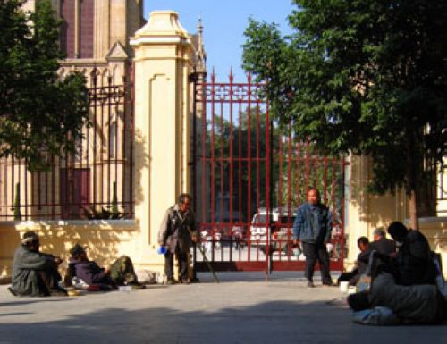 记者有一段时间在北京崇文门教堂参加崇拜活动时,就经常看到有一位全身瘫痪的乞讨者也不知是怎样来到教堂门口,在那里等待信徒们施舍,这个时候通常都会有一些信徒走过时动了恻隐之心,给予食物或一些零钱。