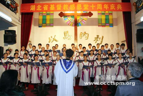 湖北省基督教感恩堂(中南神学院实习堂)十周年庆典活动于2012年9月21日上午在感恩堂二楼主堂举行。湖北省基督教两会全体同工、中南神学院全体师生及感恩堂信徒,约2000余人参加了这一庆典活动。