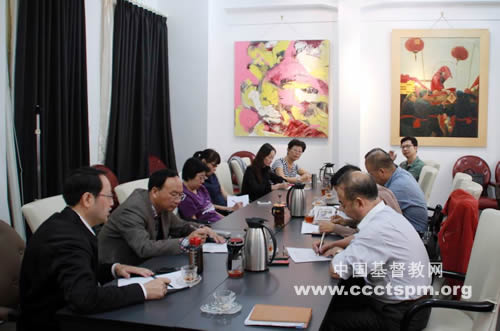 2012年10月11日上午,浙江省基督教两会本届圣乐事工委员会第一次会议在杭州基督教青年会二楼会议室召开。会议由省基督教两会副主席、圣乐事工委员会主任陈歆牧师主持,省基督教两会主席潘兴旺牧师、会长顾约瑟牧师及秘书长陈孝浪牧师出席会议并讲话。省民宗委二处娄恒副处长出席会议。