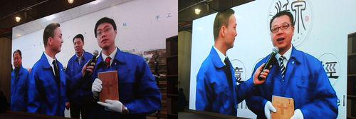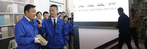 让人倍感意外的是:第1亿本《圣经》并未直接由爱德的董事带到庆典现场,而是从生产车间开始,在解说中,由爱德员工逐一接力传递,最后带至庆典现场,之后爱德基金会董事陈泽民牧师宣布了它的诞生。