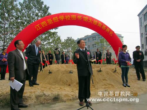 11:30江西圣经学校图书馆大楼建设奠基典礼,由江西省基督教三自爱国运动委员会副主席兼秘书长李云根牧师主持。在庆典上,中国基督教协会副总干事包佳源牧师和香港基督教文化学会会长李志刚牧师及美国中国伙伴董事长林铭立牧师,在讲话中均提到在提升教育质素和培养合格人才方面图书馆是必备条件,他们都充分肯定了图书馆在神学教育中的重要作用,图书馆是神学院校的心脏,图书馆的建设为神学教育和合格人才的培养,教学研讨提供坚实的后盾。