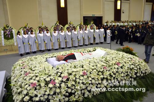 2012年11月27日上午10时30分,在南京市雨花区殡仪馆新馆,中国基督教会的杰出领袖、全国政协原副主席、金陵协和神学院名誉院长丁光训主教遗体告别仪式隆重举行。