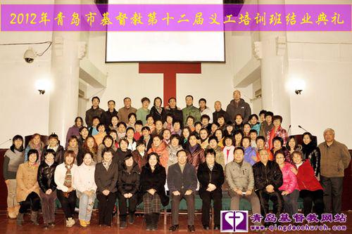 青岛市基督教第十二届义工培训班结业典礼于2012年11月28日18点30分,在青岛市清和路基督教堂举行。青岛市基督教两会的主要负责教牧人员与培训班学员们欢聚一堂,共同见证和分享了这一时刻。