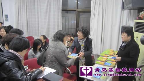 典礼的最后,由青岛市负责的教牧人员代表两会为学员发放了属灵书籍,《默想主耶稣》、《信心引导我们前进》和《空与满》。