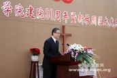 庆典上,中国基督教三自爱国运动委员会主席、金陵协和神学院董事长傅先伟长老代表学院回顾了建院60年来的历史。他在表示祝贺的同时,也希望学院以此次校庆为契机,在学校领导班子的带领下,团结奋进、攻坚克难,开拓进取,百尺竿头、更进一步,努力把金陵协和神学院办成综合实力一流的神学院,为中国教会培养更多高素质的人才,为构建和谐社会和世界和平做出更大贡献。与会全体人员深切缅怀了刚刚去世的名誉院长丁光训主教对学院做出的巨大贡献。