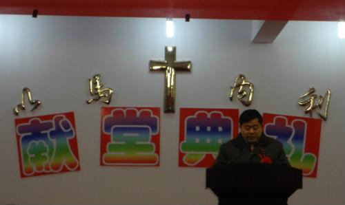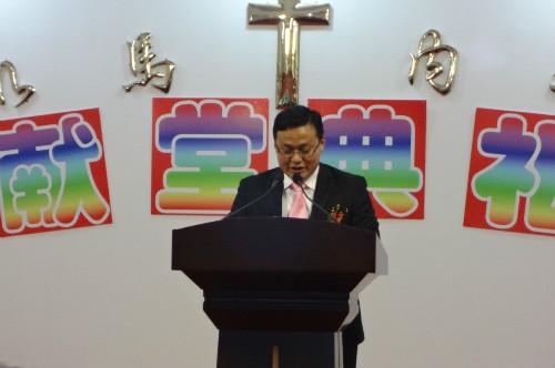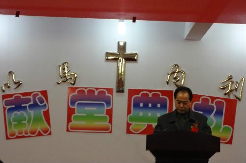 10:00献堂典礼正式开始。苏州市基督教三自爱国运动委员会副主席黄馥萍牧师,吴中区民族宗教事务局夏健局长、陆金林副局长等一行7人,吴中经济开发区总工会副主席朱彩萍女士,横泾街道党工委副书记金凤鸣先生、横泾街道工会主席赵坤云先生等7位领导参加。