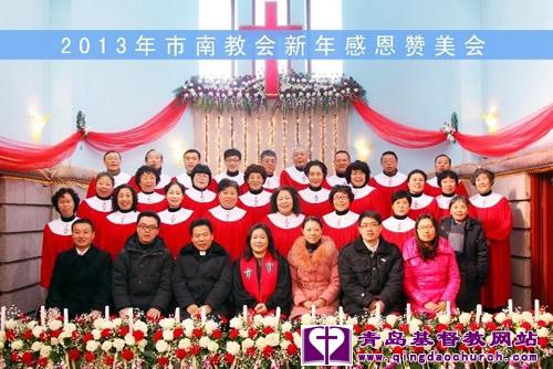 2012年12月31日上午,青岛市市南区基督教会在观象二路教堂举行了迎新年感恩赞美会。全区教牧同工、三自爱国小组成员、各堂点管理小组,诗班人员、服侍弟兄姊妹,500多人参加了本次赞美会。董美琴牧师主持了这次大型活动。