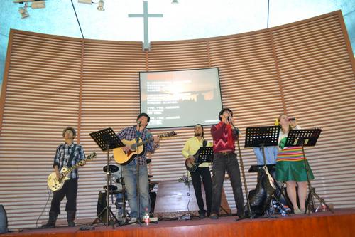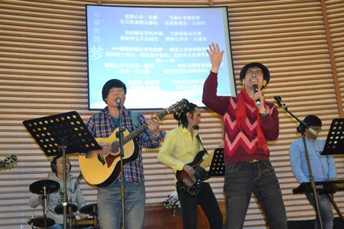 1月26日下午,主内乐队彩虹来在北京基督教丰台堂工商团契新春赞美会上带领了近三个小时的赞美。演唱了《我神真伟大》、《出走》、《分享你的梦》等多首歌曲,并分享这些歌曲背后的一些恩典故事。