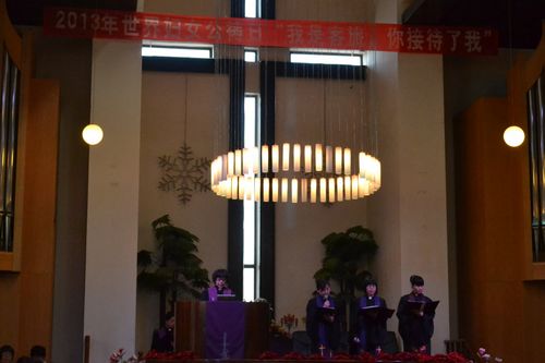 2013年3月1日(周五)上午9时,北京市基督教会举办了世界妇女公祷日崇拜。崇拜由4位女牧师主礼,1位女牧师分享信息,鼓励信徒在基督的爱的激励下,关心我们身边的每一个人。崇拜共有500多人参加。