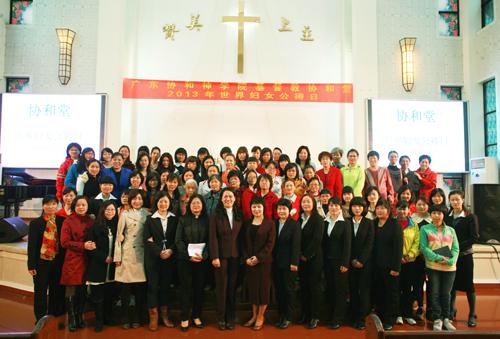 2013年3月1日上午9时30分,广东协和神学院与广东省基督教协和堂联合举行“世界妇女公祷日”特别聚会。神学院的全体女教师、女同学及女职员同协和堂的全体女同工并部分女信徒100多人相聚在协和礼拜堂,共同献上祷告。