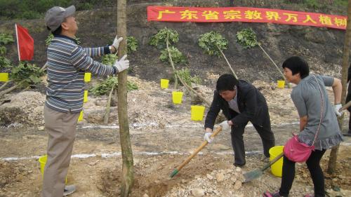 2013年3月12日上午,在广东省基督教三自爱国会副主席樊宏恩牧师带领下,省基督教两会同工及广东协和神学院师生一行二十人,前往广州市花都区参与了由广东省民族宗教事务委员会举办的“广东省宗教界万人植树护林活动”。
