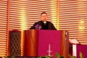当晚的聚会由王海强牧师主礼,恩歌诗班和雅歌诗班分别献诗。信众齐唱《流血歌》和《近主十架歌》。肖云北牧师为主证道,题目为《再想圣餐的意义》,肖牧师引证哥林多前书11章23-32节并哥林多前书12章12节的经文,与大家分享。肖牧师在强调圣餐意义后,又告诫众信徒要如何领受圣餐。首先是按礼吃,其次是要省察自己,最后还要懂得分辨,以区别于其他一般的晚餐。