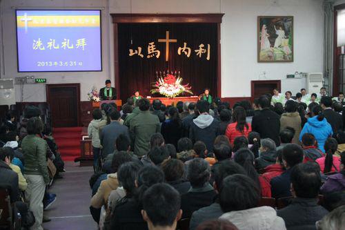 3月31日,庆贺主耶稣复活的这天,89位弟兄姊妹在北京市基督教会缸瓦市堂接受洗礼,与死而复活的基督合一,缸瓦市堂杜凤英牧师、张锦星牧师为他们施行洗礼,张书强牧师代表教会接纳新受洗的弟兄姊妹加入教会。