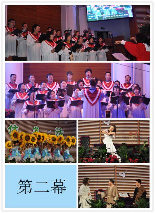 之后是大型复活节主题赞美崇拜。今年丰台堂的赞美演出采用了大型主题演出的形式,由丰台堂圣剧团契、颂歌诗班、舞蹈团契、朗诵团契、主日学团契联合演出,并特别邀请了北京教会旅程诗班参与赞美。主题演出以圣剧、歌诗、舞蹈等形式再现耶稣复活前后的故事,让大家再一次用心灵经历耶稣的复活。演出分为三幕。