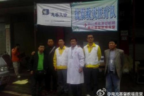 24日,四川南充基督教福音堂从灾区给记者发过来消息说:23日前往灾区的四川南充教会爱邻医院医疗救援队一行共9人,主要在灾区进行医疗义诊和赈灾物资发放工作。