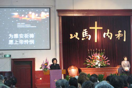 4月20日早晨8:02四川雅安发生地震。一周来,北京市基督教会缸瓦市堂各聚会都在持续为雅安祷告。