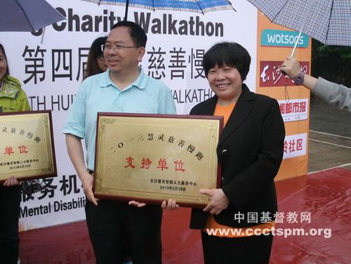 在启动仪式上,基督教城南堂义工在雨中表演了手语“隐形的翅膀”,城南堂还被授予“支持单位”,由市残联理事长熊慈明授牌。