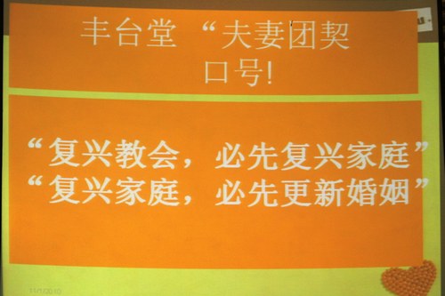 在北京市基督教丰台堂于上周六下午举行的夫妻团契聚会上,团契负责人汪国新弟兄报告说,从六月开始,夫妻团契聚会将增至一月两次。