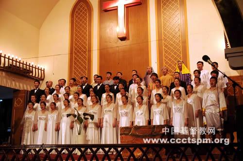 哈尔滨市基督教天声圣乐团成立己有十多年,由该市几十位有一定音乐基础且较年轻的信徒组成,多年来他们亦在全国各地献演,这次他们给宁波百年堂信徒带来的是圣歌剧《约瑟的彩衣》,40分钟的献演,节奏轻快、演唱完美,每到一个段落结束,台下观众即以掌声回应,气氛融和,美妙、纯正、专业是大家欣赏后的一致反映。李牧师还在节目前分享了主的话语。
