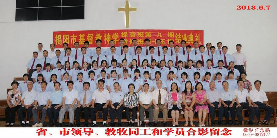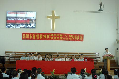 2013年5月7日,广东省揭阳市基督教神学培训中心在揭阳市东山教堂举行提高班第九期、进修班第十五期结业典礼。结业典礼在《青草地之歌》和《我愿为你去》的歌声中拉开帷幕。