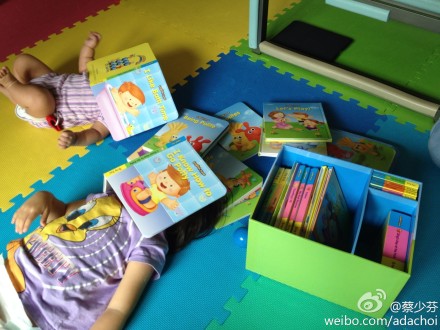 “哈哈。汤圆和包子都会看书了!看她们多用心看,每人一本!姐妹俩每天都听英文。现在连叫汤圆醒来也是放CD的!真的丰富实用,好开心啊!(ps:免得大家问是什么品牌,ONE ELITE Children Group的《幼儿全面发展组合》,够细心吧。”今日,9时22分,蔡少芬于个人微博中写到。