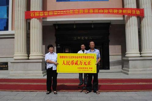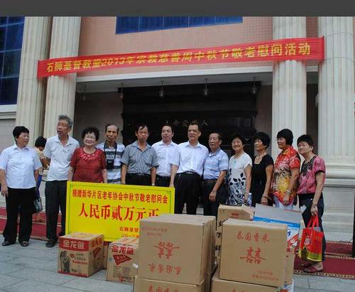 上午10点许,“石狮基督教堂2013年宗教慈善周中秋节敬老慰问活动”拉开了序幕,捐献仪式由石狮市民宗局许局长主持,石狮市市委常委、统战部林自育部长,石狮市政府陈元生副市长,有关部门领导及其他宗教团体、新华片区老人会等100多人参加了活动。石狮堂陈诚实长老代表石狮教堂为新华片区老人会捐献2万元,为老年人办实事、做好事。透过这次活动让大家发扬孝敬老人的传统美德,努力营造帮贫助老、关爱老人、共建和谐的良好社会氛围,让老年人感受到了温暖,感受到了真情。