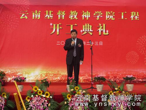 云南基督教“两会”主席余文良牧师、云南神学院院长前院长李从明牧师分别在典礼中致辞与祝祷,参加开工典礼的,还有云南省宗教事务局部分领导。