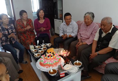 2013年10月4日,在区三自副主席兼秘书长、开发区教堂负责人孙红雷老师的带领下,开展了第一次的活动,为两位老人送去关爱和温暖。弟兄姐妹带上丰富的水果和大大的蛋糕,为两位年满80岁的老夫妻过生日。有唱歌赞美,有见证分享,有祷告祝福,老人们深受感动,非常的开心,时而感动的流泪。