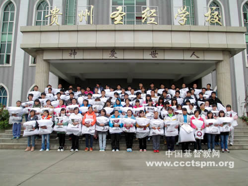2013年10月20日,在贵阳经商的浙江省信徒谷建英夫妇为贵州圣经学校师生送来了120床棉被。谷姊妹说:我和我的丈夫都特别喜欢参加贵州圣经学校的青年聚会,弟兄姊妹的敬拜赞美感动我们的心,经上说:“爱神的,也当爱弟兄,这是我们从神所受的命令”,我们愿意和弟兄姊妹分享神的爱。谷姊妹夫妇还表示,愿意支持5位在校贫困生在校期间生活费,让他们安心学习,完成学业,好好为主做工。
