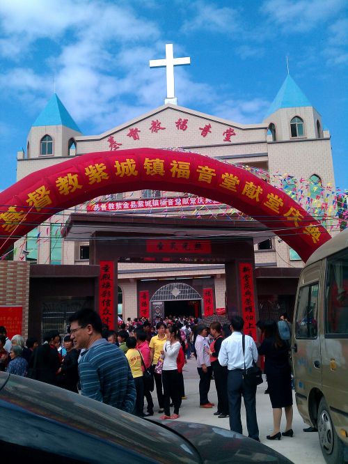 2013年11月8日上午9:30分,河源市紫金县紫城福音堂举行了献堂典礼暨感恩崇拜。广东省基督教三自爱国会陈顺鹏主席,协会会长梁明牧师;深圳、惠州、香港、马来西亚等兄弟教会的牧长同工;河源市五县一区的教牧同工以及紫金教会的弟兄姊妹约有2500人参加。河源市民族宗教事务局蓝晓军局长及紫金县宗教局钟远青局长也前来祝贺。
