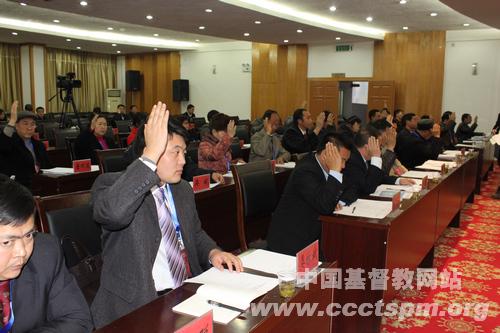 会议采取举手表决的方式选举出新一届委员会、常务委员会、领导班子,杨朝云牧师当选为贵州省基督教三自爱国运动委员会主任、贵州省基督教协会会长,罗应富、杨明祥、陈学艳、王真明当选为副主任,罗应富、文道才、林丽当选为副会长,秘书长、总干事由罗应富牧师兼任;陈福秀、周仕忠、晏林斌被提名为副秘书长,杨光华、文友军、郭桃元被提名为副总干事。