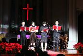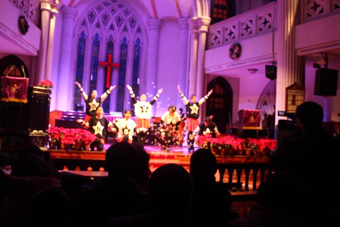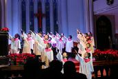 赞美会在主日学小朋友的赞美歌声中拉开帷幕。景灵堂青年团契、江湾堂青年团契的成员,纷纷献上了诗朗诵、舞蹈、相声以及圣剧表演“道成肉身”。