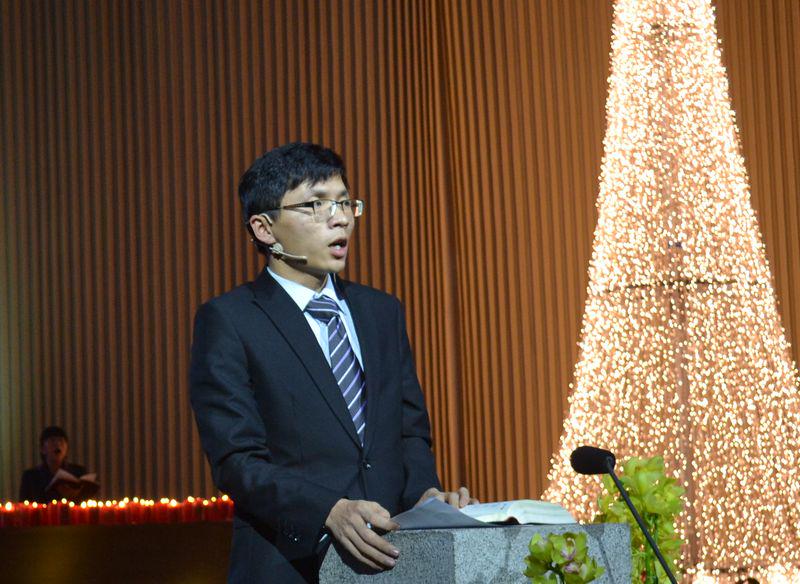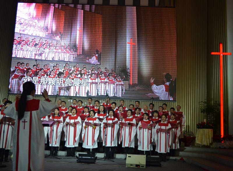 不过,我们再爱主,也比不上主向着我们的爱。7点40分,海淀堂圣诞节晚上第二堂礼拜开始后,诗班献唱赞美诗《主恩深广》,将一幅又宽又广、一望无垠的草原的画面描绘在众人眼前,并将之与主的爱相比,更显得上帝向着我们的慈爱是多么长阔高深、不能计量。