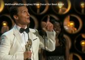北京时间3月3日上午9点半,第86届奥斯卡颁奖典礼在美国杜比剧院举行。讲述艾滋病病人与病痛抗争的电影《达拉斯买家俱乐部》主演马修·麦康纳抱得最佳男主角的奥斯卡小金人。