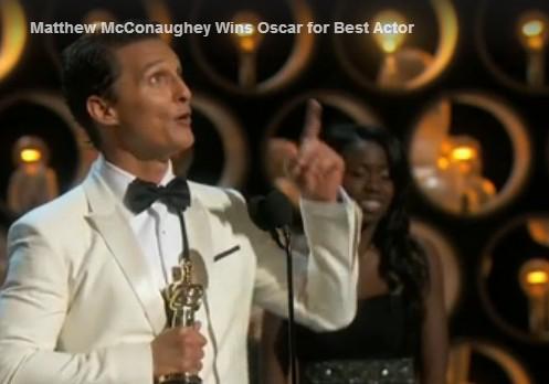 《达拉斯买家俱乐部》主演马修·麦康纳获第86届奥斯卡最佳男主角奖,他在获奖致辞中称,自己生命中有三样东西不可缺少:上帝、家人和像英雄一样仰望的人。