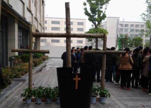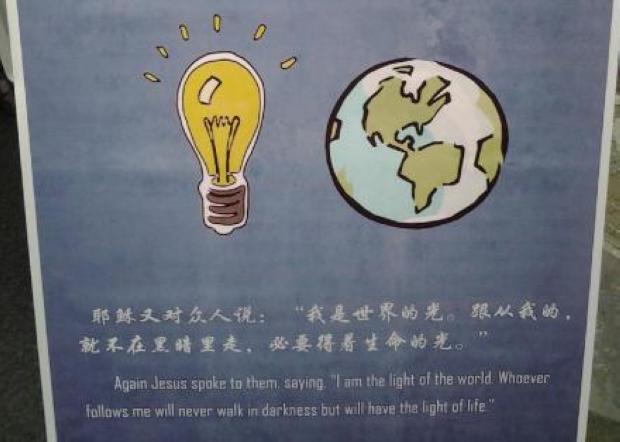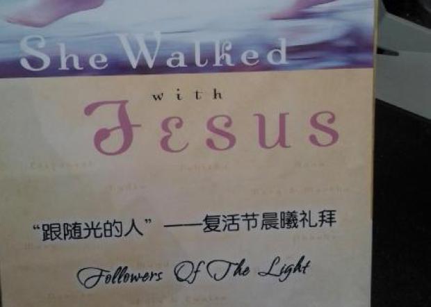 昨日(复活节)上午7:00,杭州下沙磐石堂在教会广场举行了复活节晨曦聚会,之后,该堂新浪微博分享了多张聚会图片。其中一张记录的是一大早就聚在葡萄架下的信徒们。