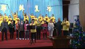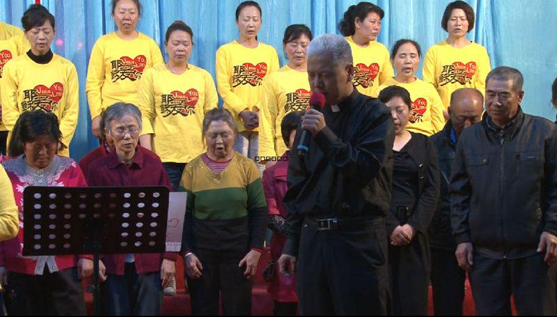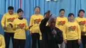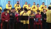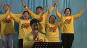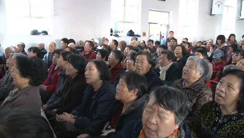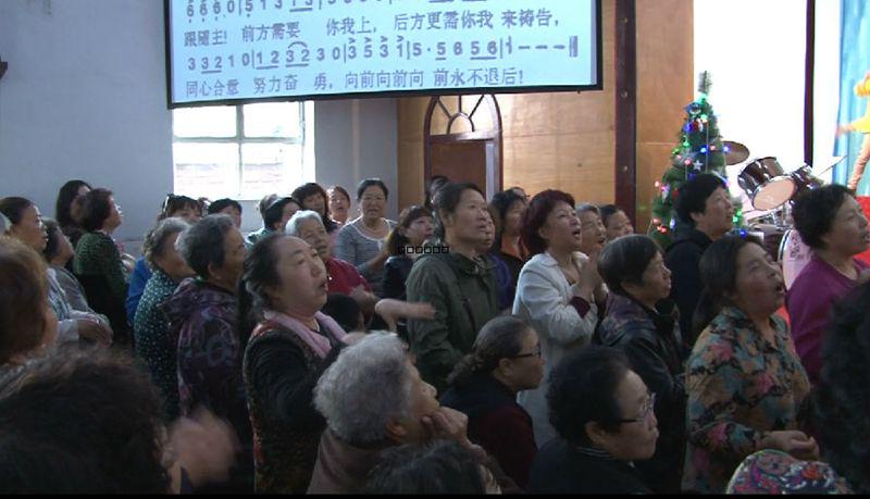 讲台下一些年老的阿姨跟着同声唱和起来,一位头发稍白的老姊妹不自已闭上了双眼,口中唱和,沉浸在那份特殊的感动之中;另一位头发花白老姊妹则眼望讲台,面露笑容,与身边的肢体们共同唱着赞美的诗篇。