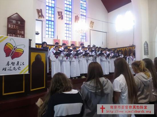 据莫愁路堂消息,崇拜于当天15时30分开始,诗班献唱赞美诗“Hosanna in the Highest(高高在上和散那)”、“Crown Him King of Kings(拥戴衪为王)”、“To God be the Glory(荣耀归于真神)”、“All Heaven Declares(诸天宣扬)”。麦天赐牧师证道“Do You Believe He is Risen?(你相信衪复活了么?)”弟兄姊妹彼此握手,相互传达“耶稣已复活”的喜悦。