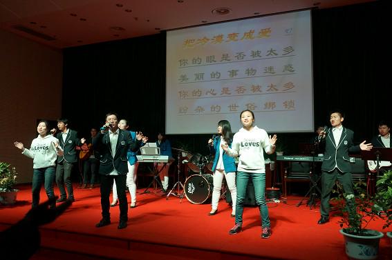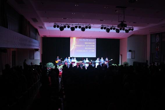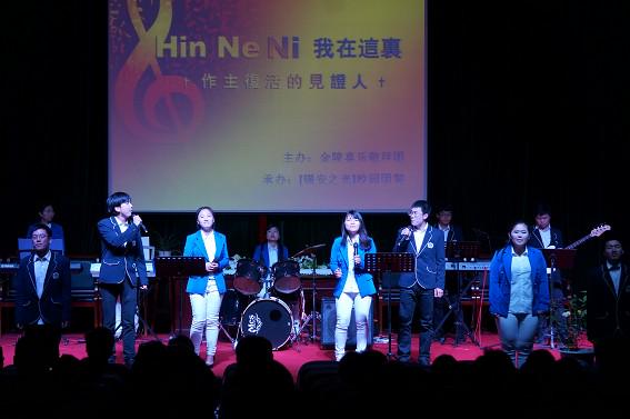 金陵喜乐敬拜团每学期一次的校园赞美祷告会于2014年4月25日在金陵协和神学院小礼堂如期举行。本次赞美会的主题是Hin Ne Ni(我在这里)——作主复活的见证人。