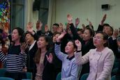 下半场以敬拜祷告为主,一曲《Hin Ne Ni》唱出大家愿为主献上的决心。最后,唐永权牧师做结束祷告并向会众祝福。
