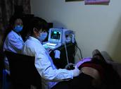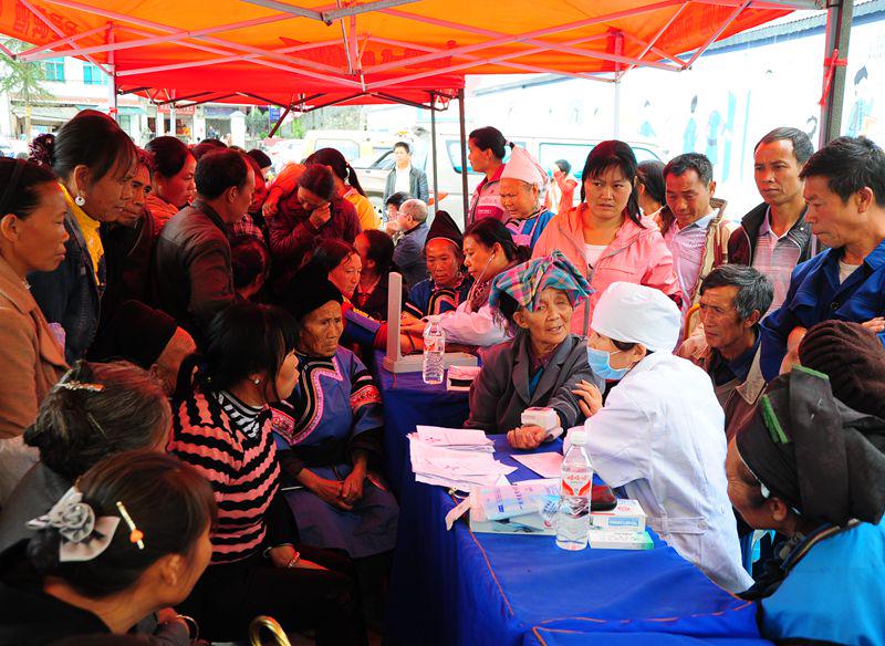 医疗队9点多钟抵达龙吟镇,听说有省城来的医生免费义诊,许多村民已经等候在镇政府大院里了,这是中国苗族第一镇迎来的首次义诊。交谈中,“喇叭苗”老姊妹告诉我说,她们天不亮就特意从几十里山路赶来,用农用车把病人拖来。通过那一双双质朴的眼神和一张张布满皱纹的脸,医疗队读出了边远山区缺医少药的少数民族他们对医生和医药的期盼。医疗队义诊所使用的场地是刚建好的镇计划生育和医疗卫生服务中心,那里有B超机、心电图机及妇科扩宫器等设备,但没有专业医生操作,院长和几位卫生员非常积极地参与医疗队的义诊活动。