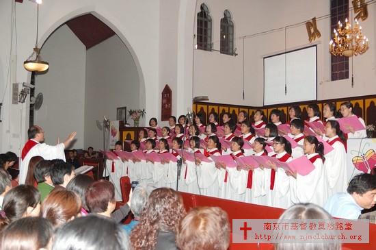 这是5月3日晚南京市莫愁路堂青年聚会,来自浙江省温岭石塘恩助教会的30余位诗班人员献唱《恩友歌》和《你是我异象》,随后,恩助堂郭献富长老为主证道。
