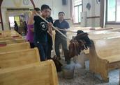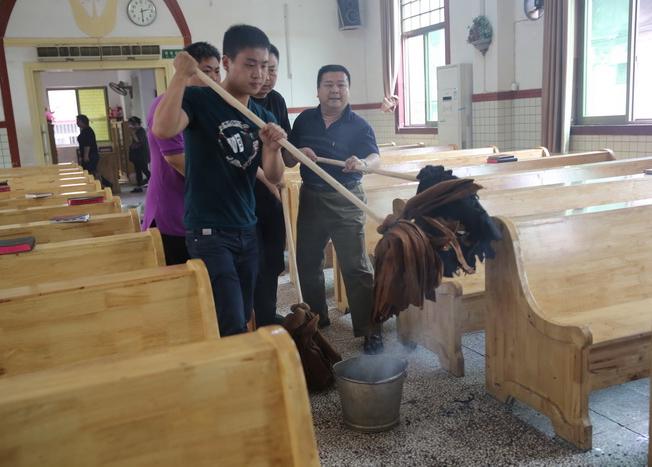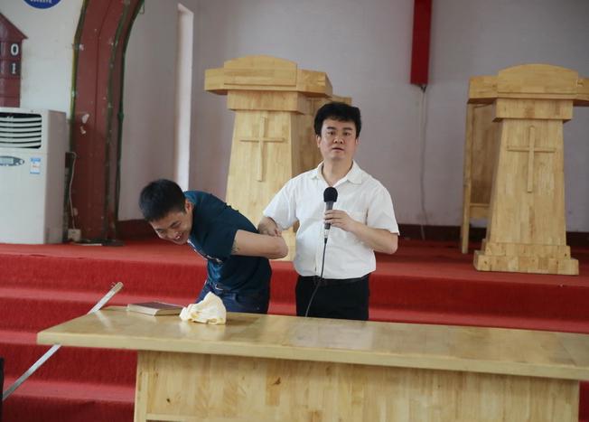 暴恐分子闯入教堂,手中还舞动两把菜刀,接待组的同工赶紧用木棍抵挡、击打……这一幕于5月27日下午发生在长沙基督教城南堂的前门——五十多位接待组同工正在参与教堂组织的消防及防暴恐演练。