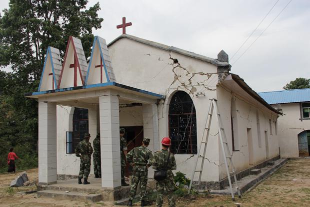 13、卡场镇龙洞教会教堂严重受损、伙房已倒塌,需重建。