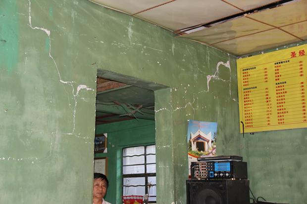 3、卡场镇石竹河教会严重受损,墙体多处裂痕,已成为危房,需重建。