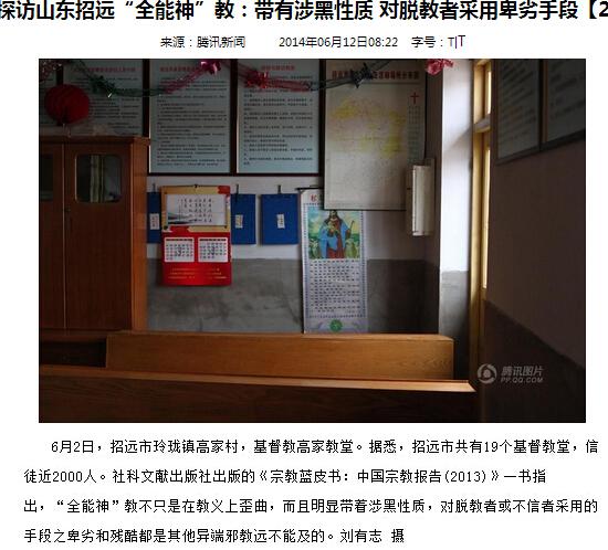 6月12日腾讯新闻一篇题为《探访山东招远“全能神”教:带有涉黑性质 对脱教者采用卑劣手段》的新闻报道中,呈现了9张现场图片,其中包括两张招远玲珑镇高家村基督教高家堂的照片。